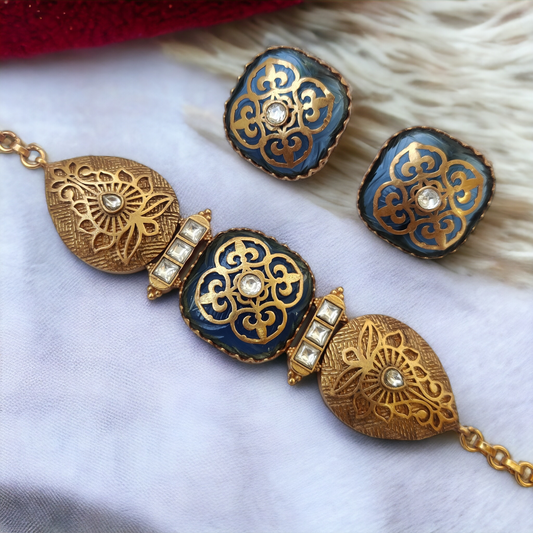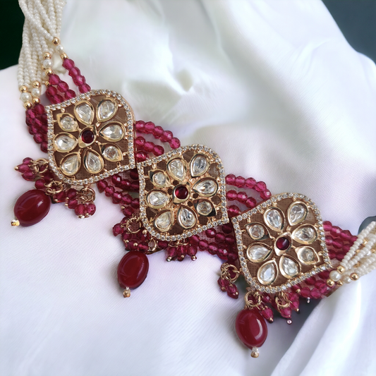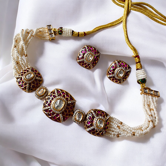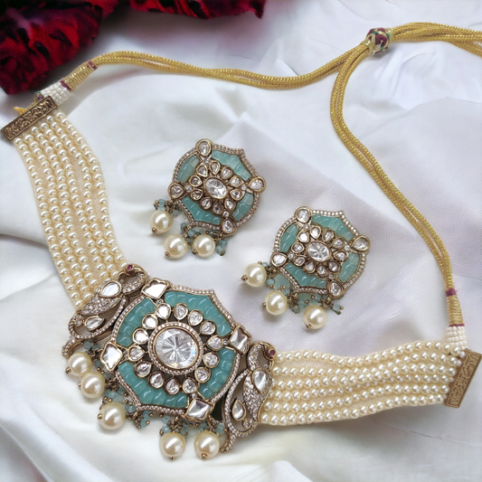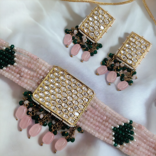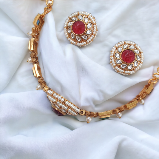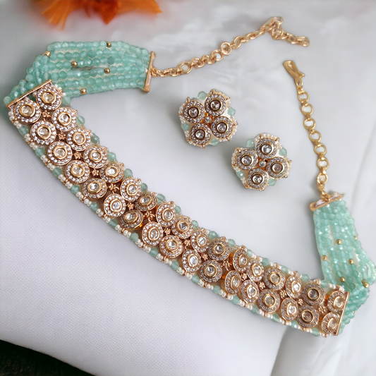 Multiple Fit Kemp Stone studded Neckpiece with Earrings