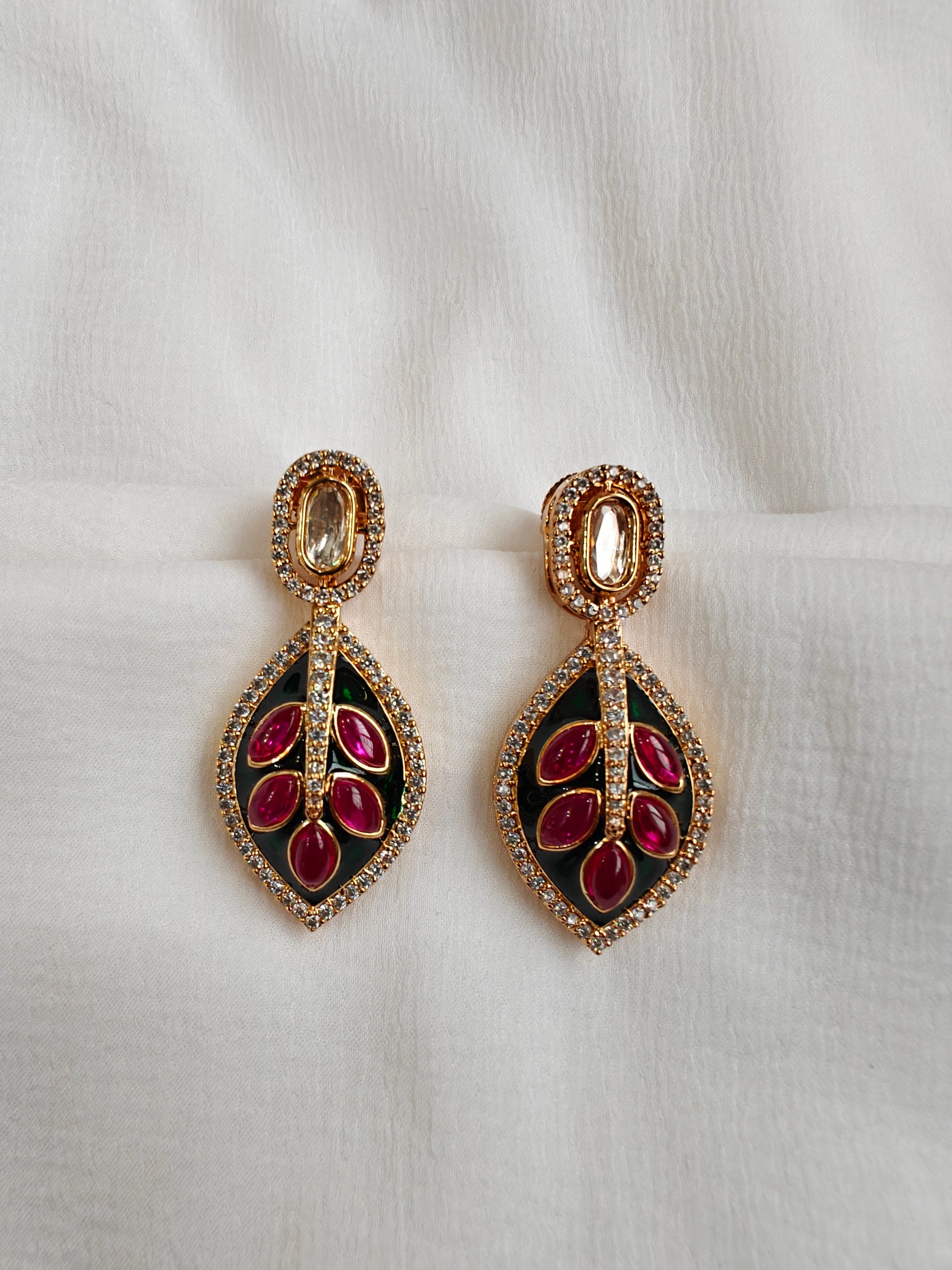 Meena Studded Leaf Drop Earrings